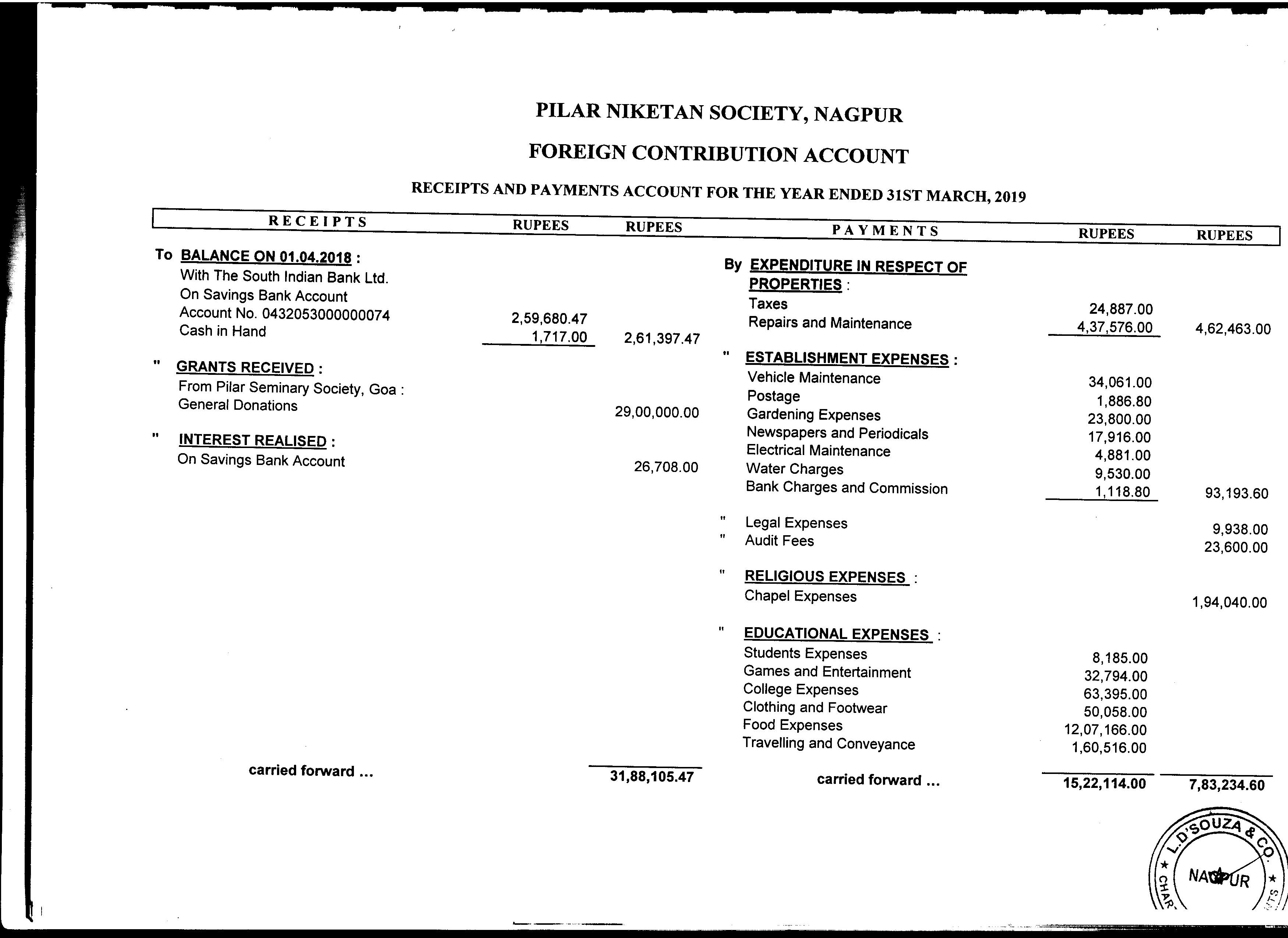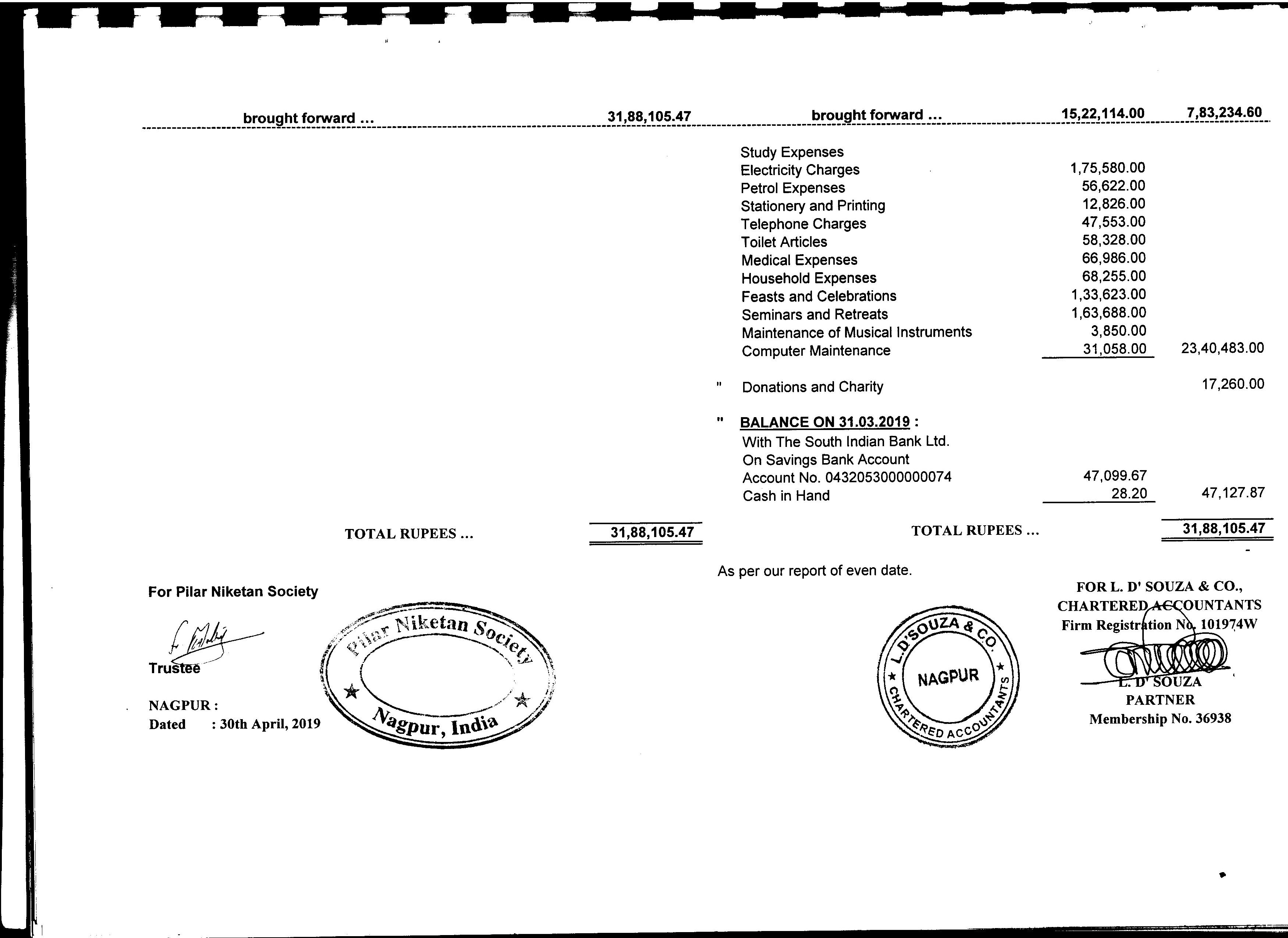 SOCIETY FC RECEIPT: Fourth Quarter 2018-2019 |